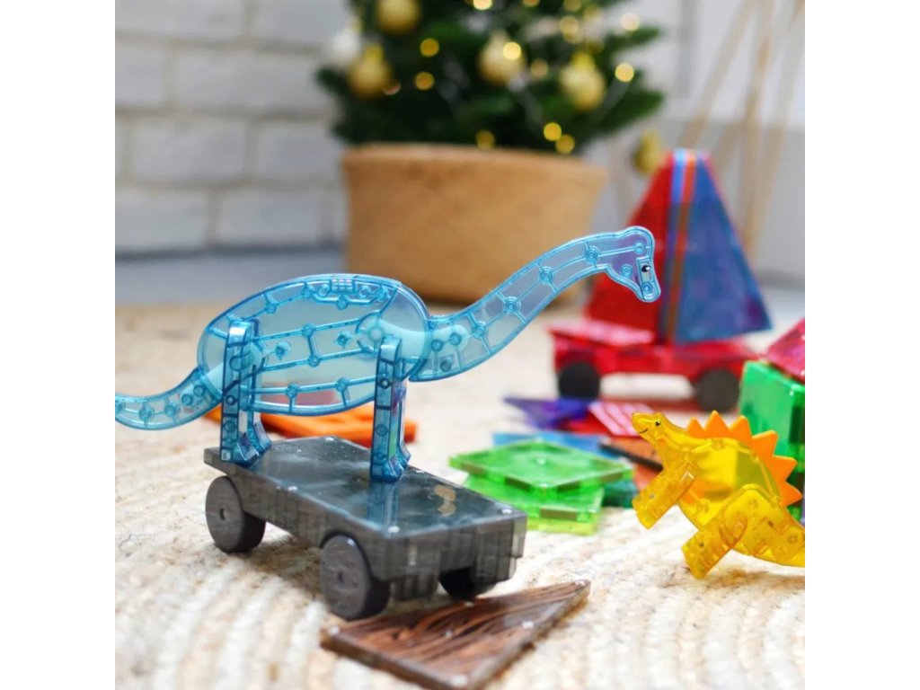 Magnetická sada XL Dino World v sobě ukrývá největší stavebnici všech dob. Obsahuje šest magnetických figurek dinosaurů, které se liší velikostí a všechny mají pohyblivé části pro ještě zábavnější imaginární hru. Ve spojení s magnetickými stromy a listy si vybudujete dokonalý tropický ráj. Děti kromě jemné motoriky a logiky zároveň rozvíjí zájem o paleonotologii. Stavebnice je kompatibilní se všemi sadami MAGNA-TILES®.