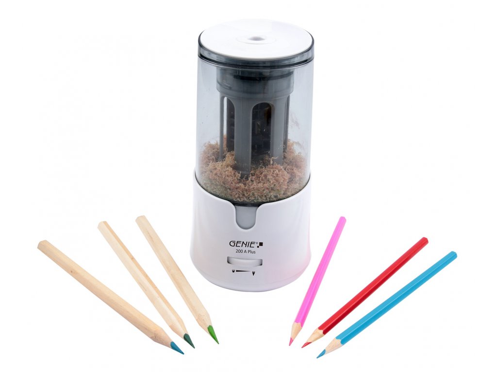 Elektrické ořezávátko Genie 200A Plus je skvělým pomocníkem v kanceláři, ve škole i v domácnosti. Snadno a rychle tužku či pastelku ostrouhá a vytvoří dokonale ostrý hrot.
