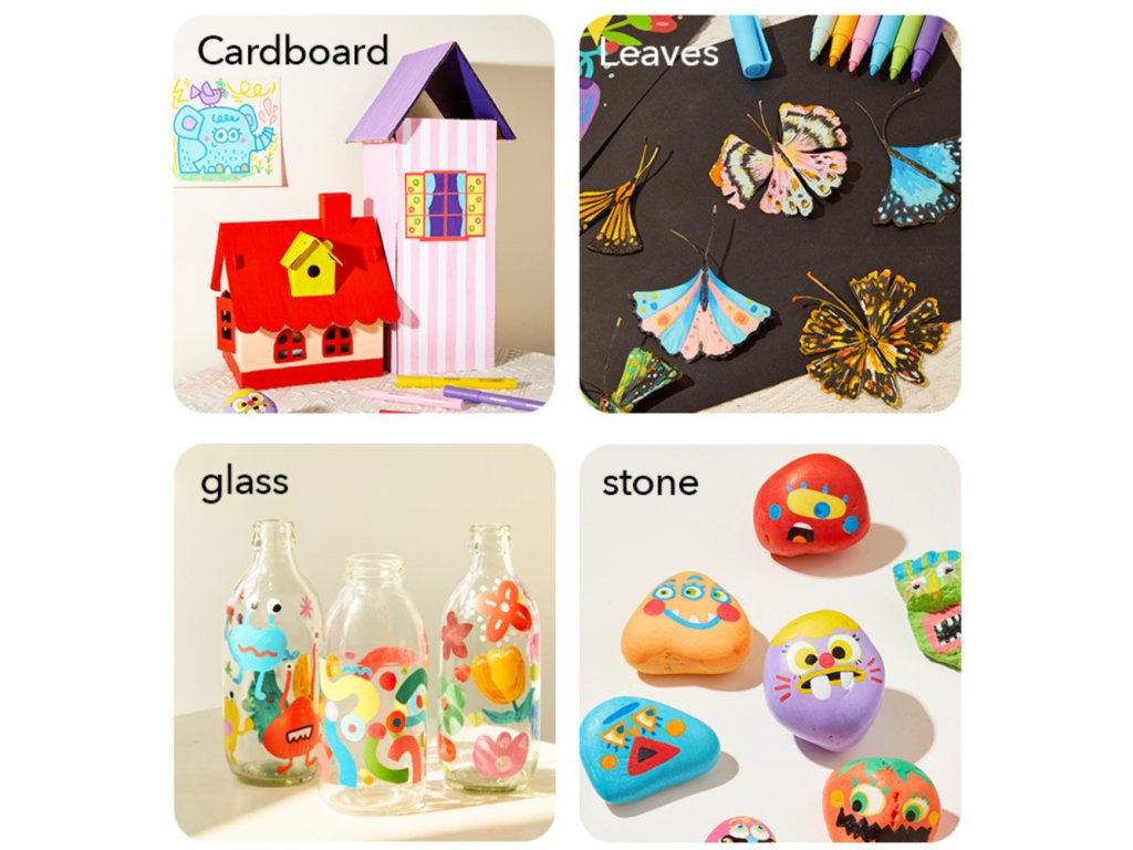 Popisovače jsou netoxické a snadno se smývají z hladkých povrchů.