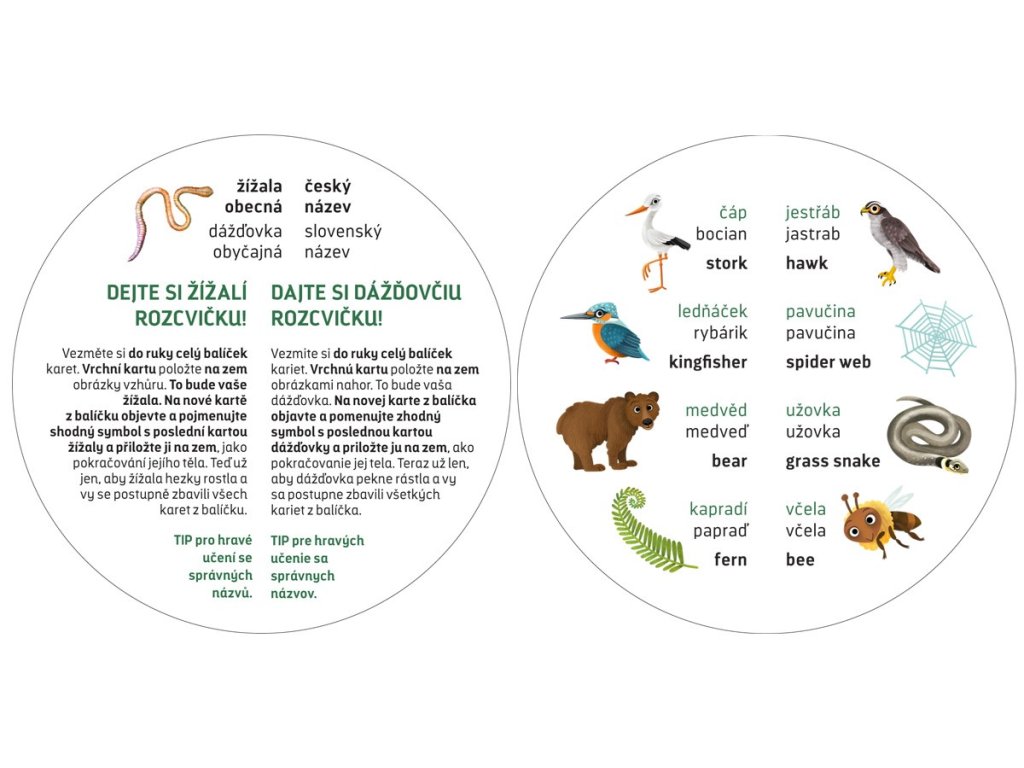 - 7 karet s obrázky a názvy ilustrací v češtině, slovenštině a angličtině.