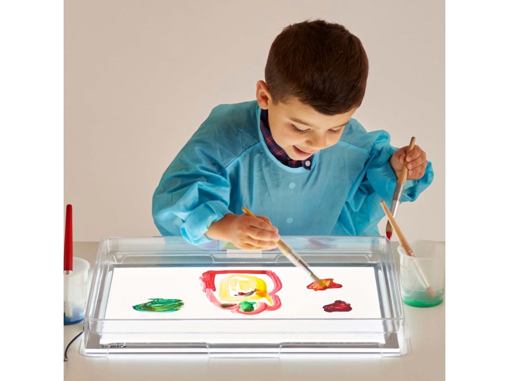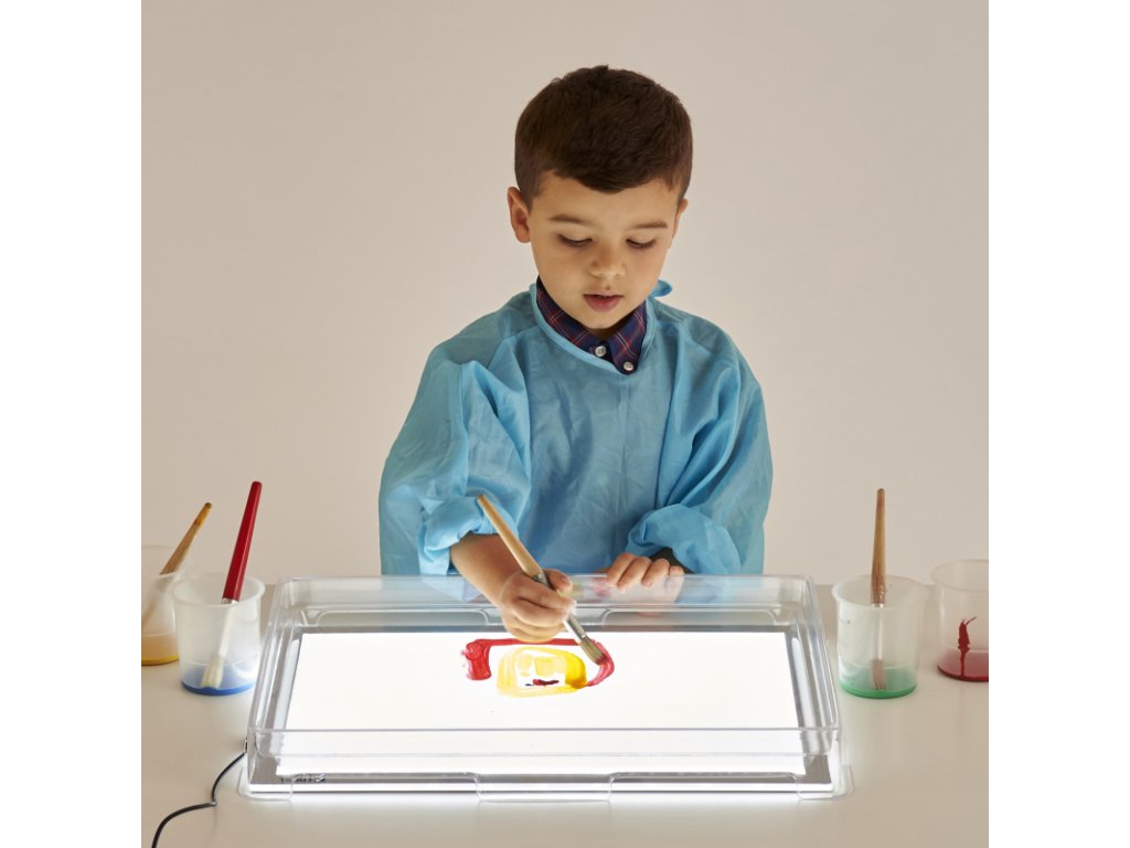 Velký průhledný mělký termoplastový kryt navržený tak, aby pasoval na náš A3 Světelný panel 73046. Poskytuje osvětlený prostor pro různé výtvarné, řemeslné, smyslové nebo objevovací aktivity.