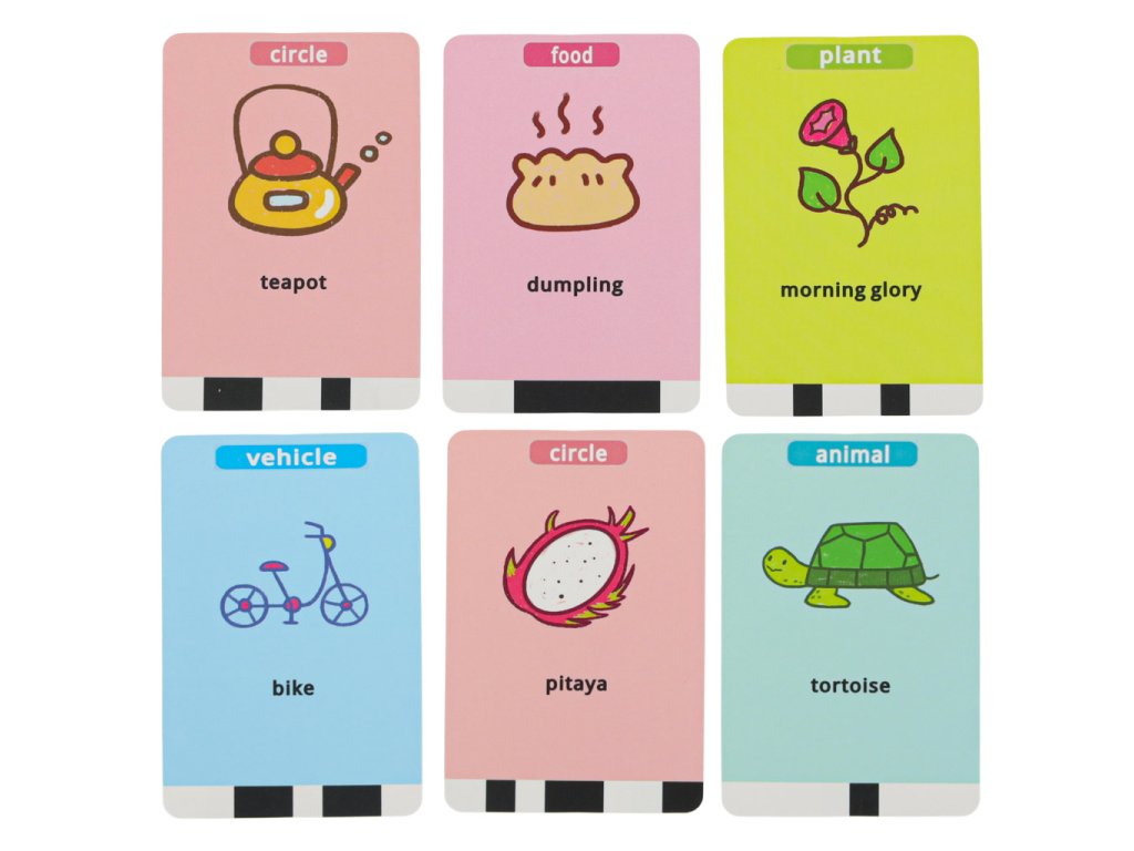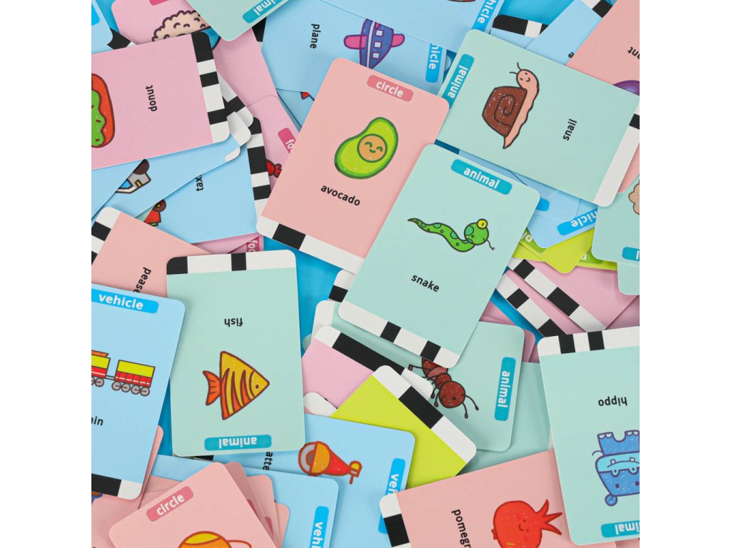 ● 100 x obrázkové kartičky (rostliny, vozidla, jídlo, zvířata, tvary)