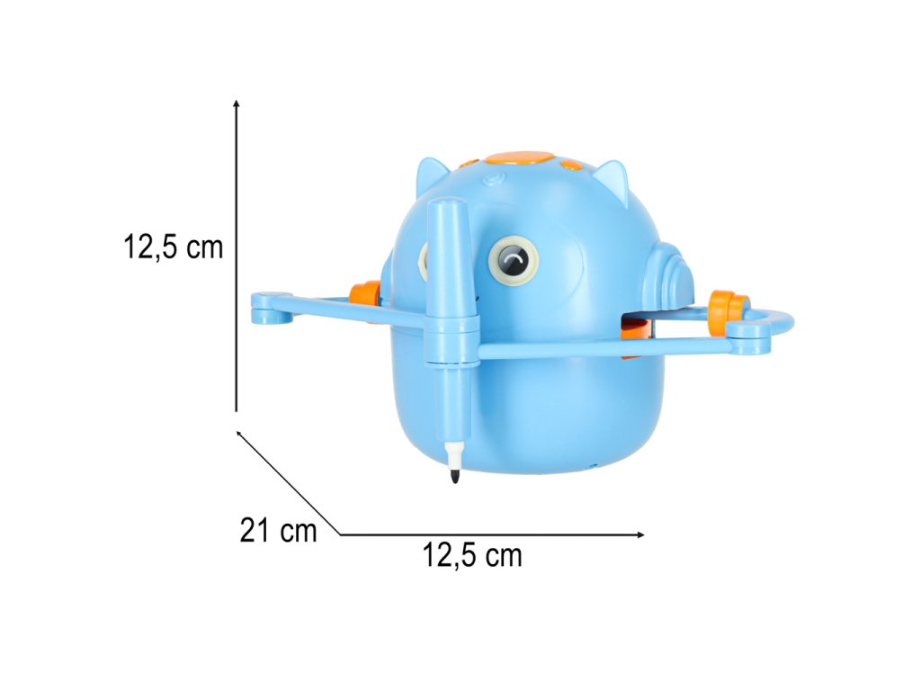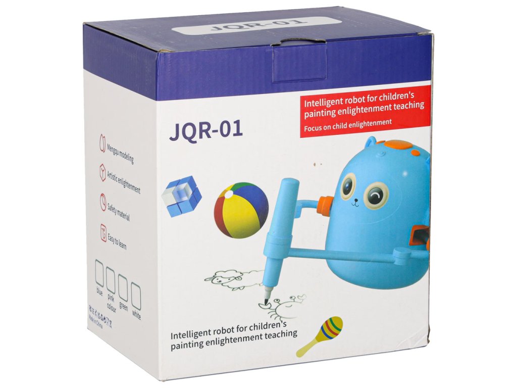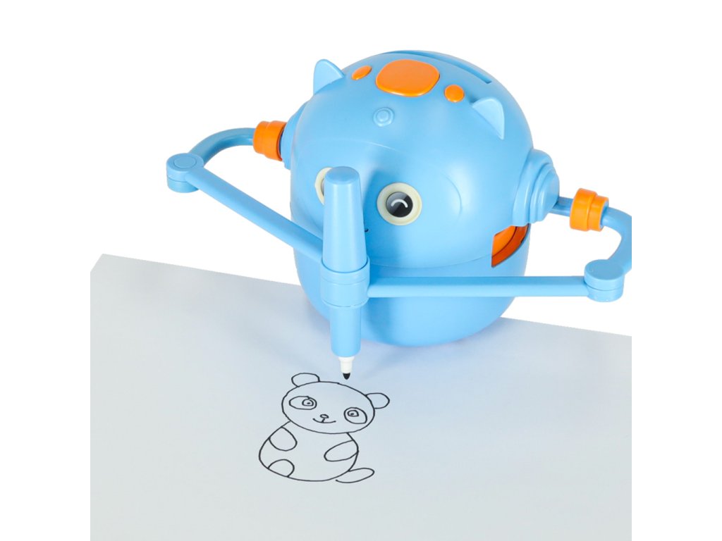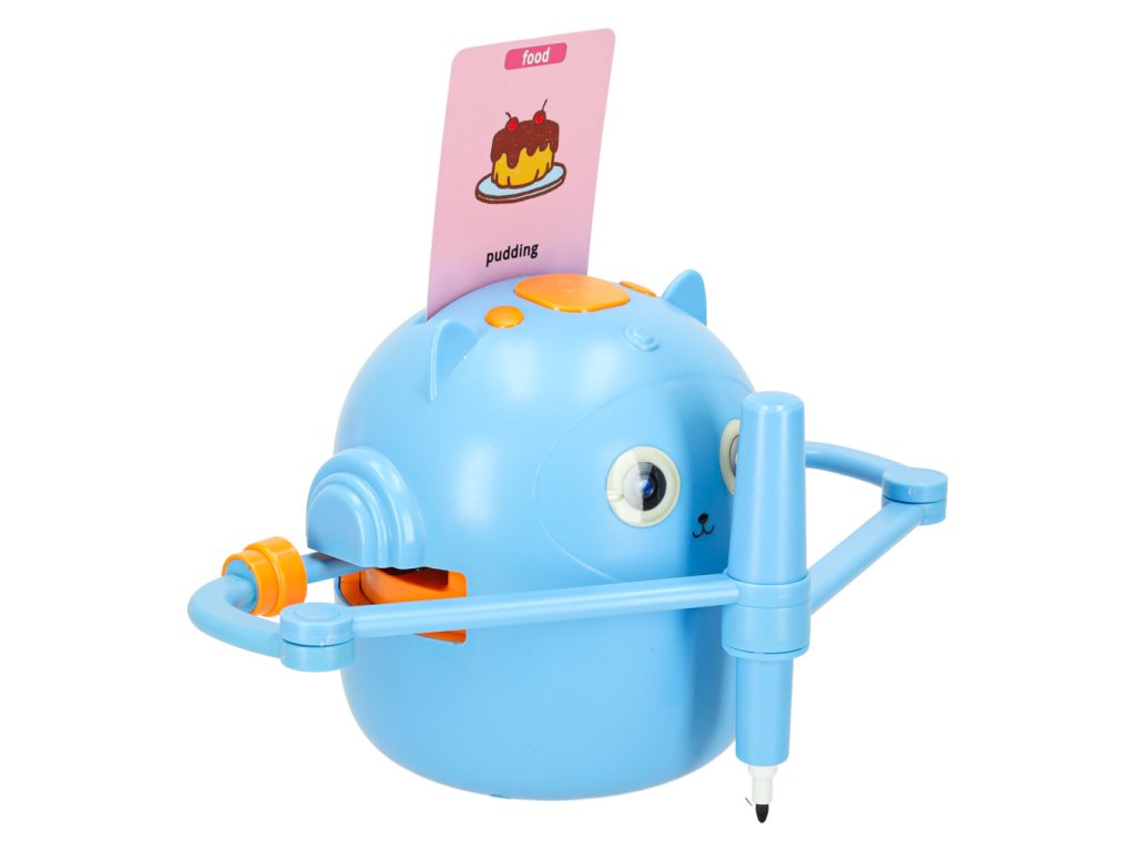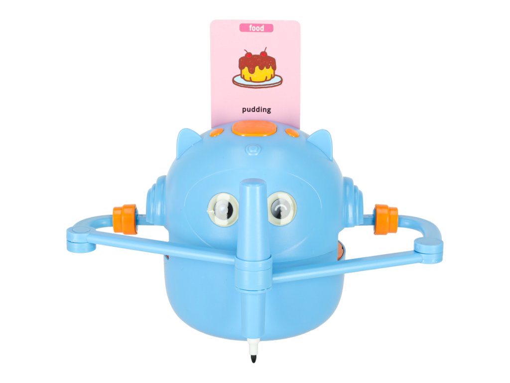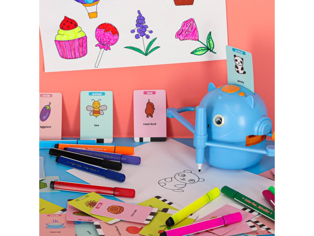 Je to víc než jen gadget – je to interaktivní vzdělávací robot, který mluví anglicky, vydává zvuky a hudbu a krok za krokem provádí děti světem kreslení a učení. Jednoduše vložte obrázkovou kartu, vložte fix dle vlastního výběru a sledujte, jak robot vytváří kresbu v rytmu veselé melodie, kterou pak dítě může přesně vybarvit.