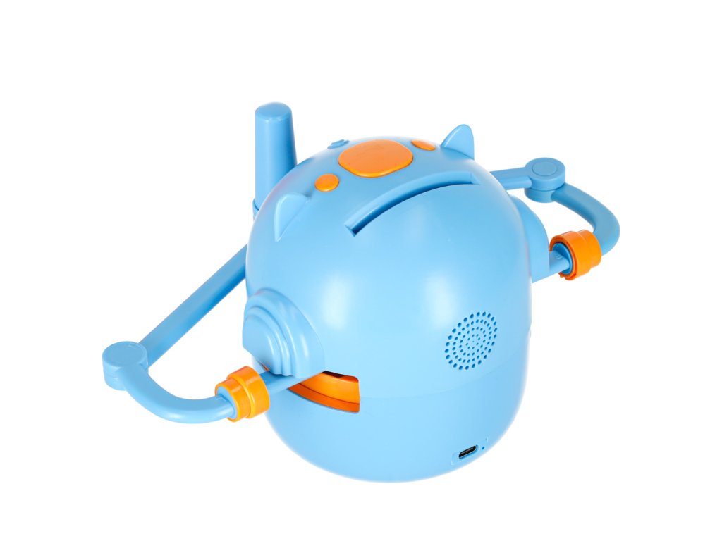 Robot je napájen přes USB a vestavěná baterie s kapacitou 2400 mAh zajišťuje pohodlné používání bez nutnosti výměny baterie. Stabilní, protiskluzová základna a kompaktní rozměry dělají z robota ideálního pomocníka na dětský stůl.