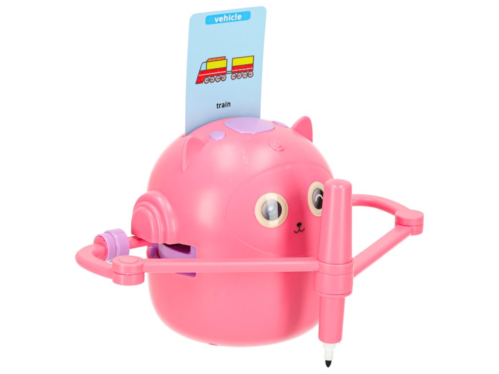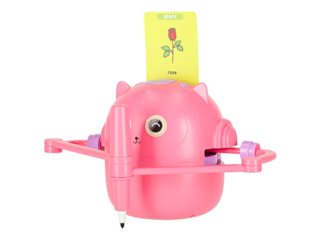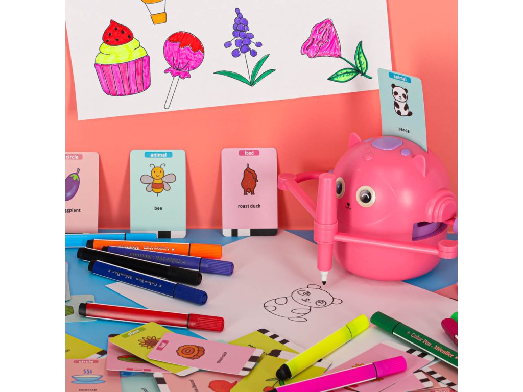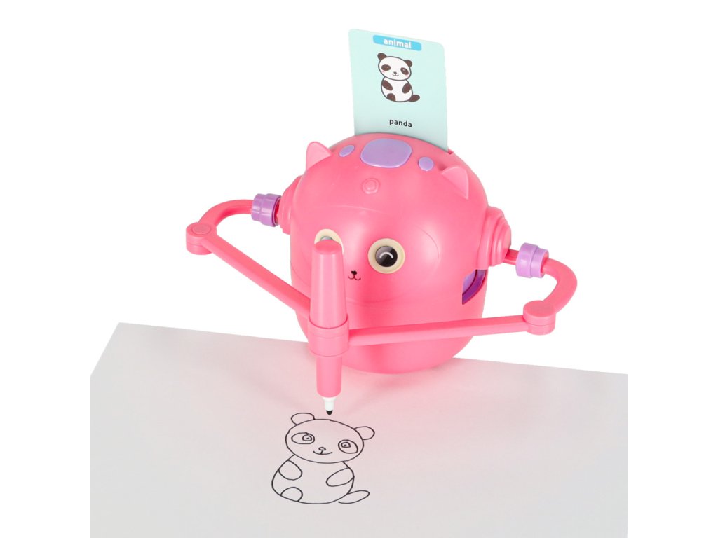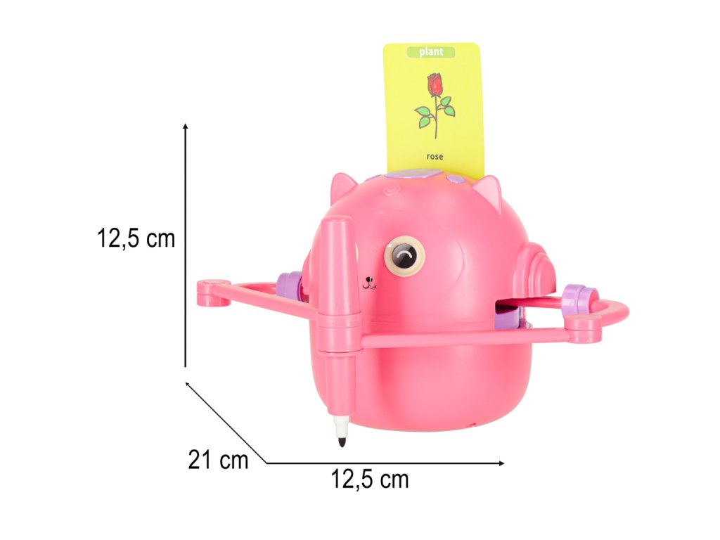 Je to víc než jen gadget – je to interaktivní vzdělávací robot, který mluví anglicky, vydává zvuky a hudbu a krok za krokem provádí děti světem kreslení a učení. Jednoduše vložte obrázkovou kartu, vložte fix dle vlastního výběru a sledujte, jak robot vytváří kresbu v rytmu veselé melodie, kterou pak dítě může přesně vybarvit.