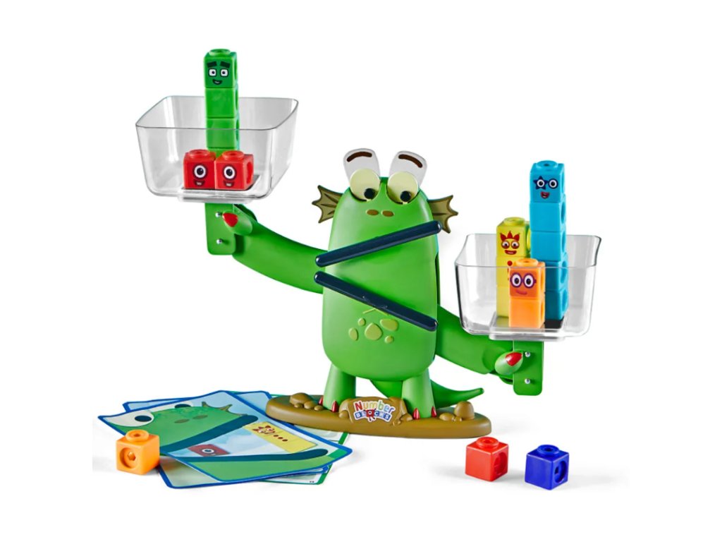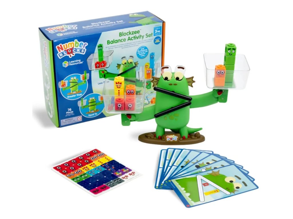 Obsahuje 61 kostek Numberblocks MathLink, váhu, 10 oboustranných karet aktivit s 20 aktivitami vyvinutými učitelem, arch samolepek a fix na suchou mazací plochu. Rozměry 30 cm na délku x 18 cm na výšku (sada 76 dílků).