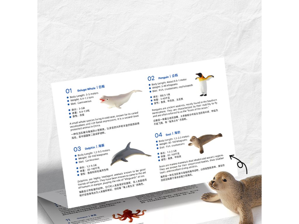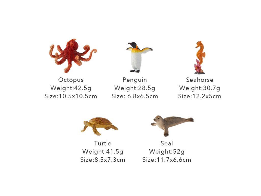 Tato sběratelská sada mořských živočichů přináší 11 precizně zpracovaných figurek, které věrně napodobují skutečné podmořské tvory. Každý kousek je ručně malovaný s důrazem na detaily, díky čemuž působí mimořádně realisticky.