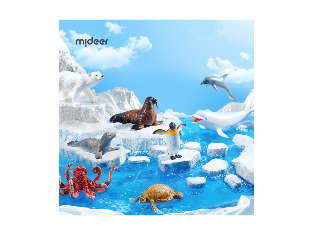 V sadě najdete 11 podmořských tvorů: mrože, belugu, rejnoka, polárního medvěda, chobotnici, žraloka, delfína, tučňáka, mořského koníka, želvu a tuleně.