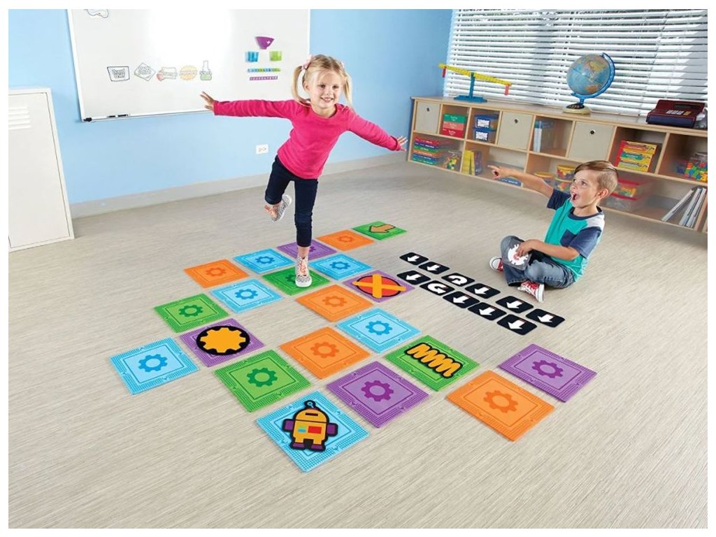 Děti se zabaví při budování hrubé motoriky krokováním, poskakováním a otáčením. Tato sada seznamuje děti s ranými nápady na kódování a programování bez elektroniky. Plnobarevný průvodce obsahuje ukázková bludiště a přehled kódování.