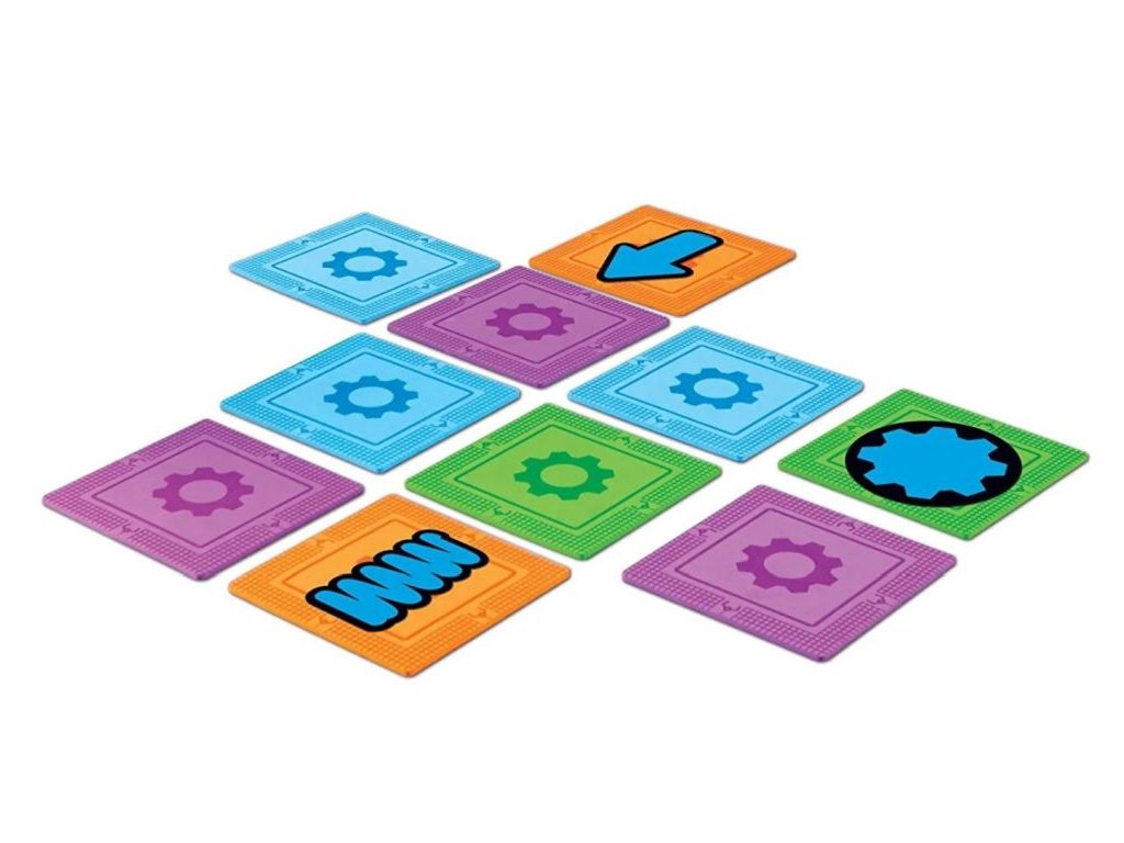Zahrnuje: 20 pěnových podložek do bludiště, 20 oboustranných kódovacích karet, vyřezávané kusy včetně: 2 robotů, 2 ozubených kol, 2 pružin, 2 šípů a 2x X