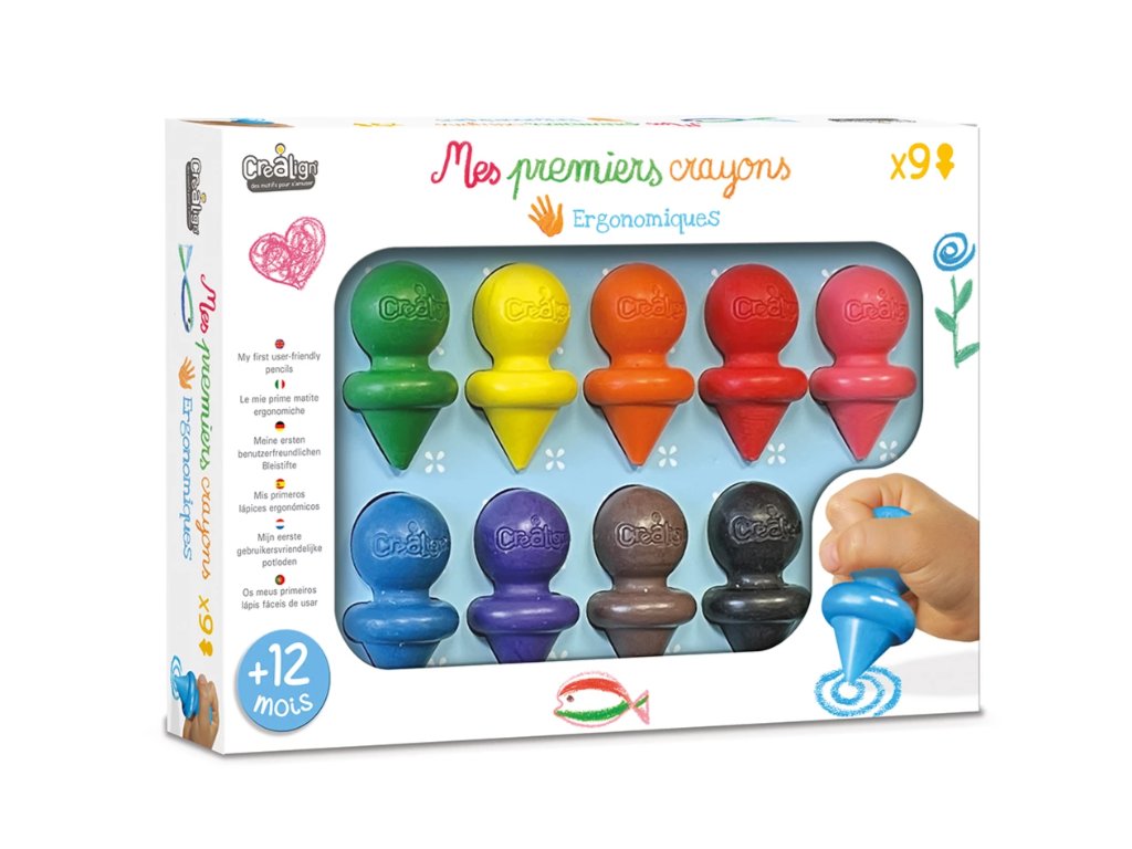Moje první voskovky od francouzské značky Crea Lign jsou speciálně navržené pro nejmenší děti. Díky ergonomickému tvaru a větší velikosti se dobře drží v malých ručičkách a jsou vhodné již pro děti od 12 měsíců. Nemusíte se bát ani nepořádku – voskovky se snadno smyjí z rukou a vyperou z oblečení. Jejich složení je navíc zcela bezpečné pro děti.